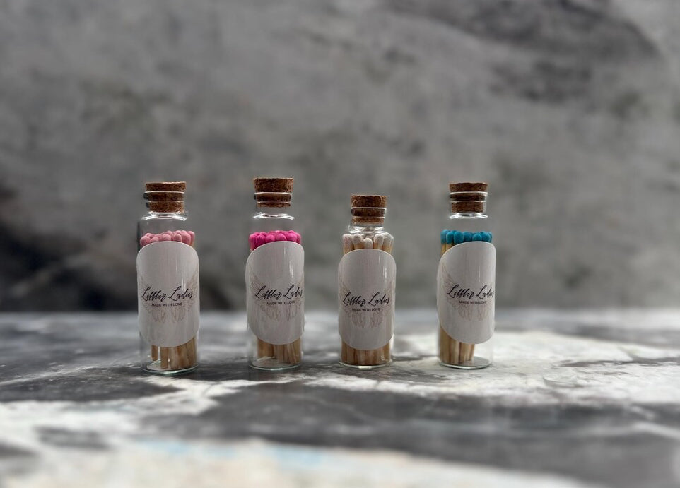 To elevate your candle experience, enjoy a lovely mini glass jar of matches, making it easy to light up your candle and indulge in its fragrance.